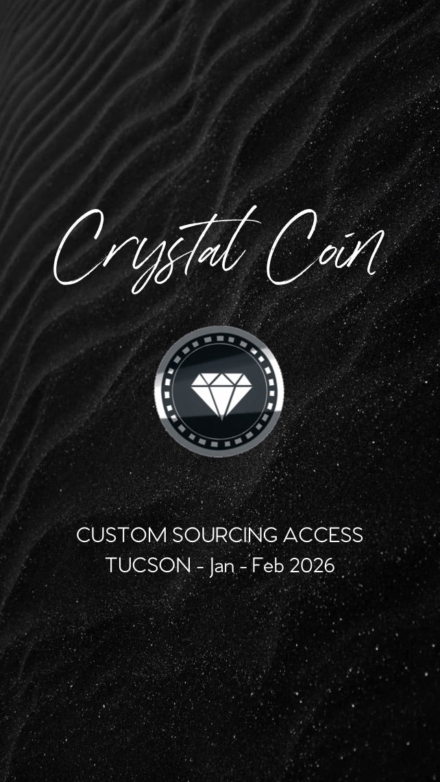 2 x WHOLESALE (50% OFF) NEW EDITION CRYSTAL COINS FOR 2026!This New Edition of Crystal Coin is a $2000 Stoned Crystals VIP VOUCHER for the Tucson Gem Show which enables a 50% off all purchases during the Tucson Gem Show. Including anything spent above and beyond the voucher itself.Ash and Jeremy are headed to Tucson for the world’s biggest Gem Show at the end of January 2026 and we want you to take part in it! Join the founders and become a part of our Tucson inner circle.